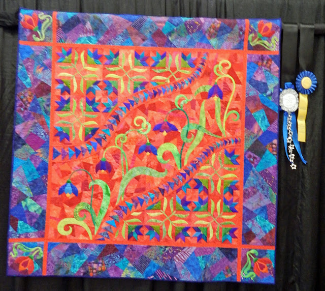 Kathy Havelka also sent in a picture of her Afternoon Delight quilt -- it is hanging in her guild's show and look - there's a blue and a purple ribbon there!  Woo hoo!  Great work, too!